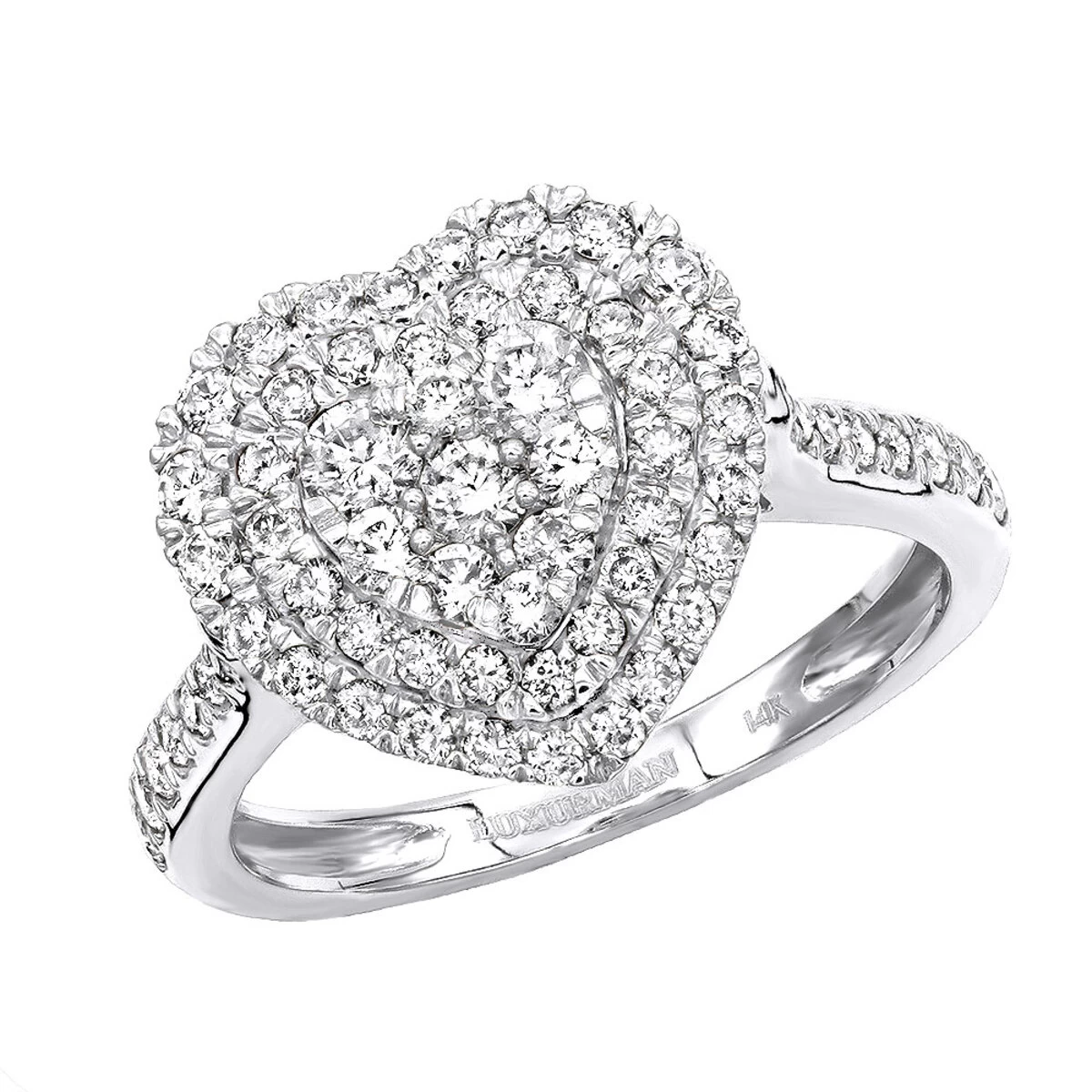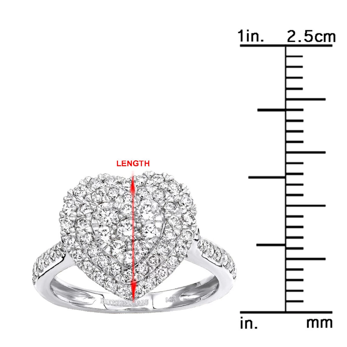 This 1 Carat Diamond Ring for Women Heart Design 14K Yellow Rose White Gold showcases gorgeous heart cluster design with masterfully pave set carat of dazzling diamonds. Featuring a fabulous design, flower gallery on the back and highly polished gold finish, this unique diamond heart ring is available in 14K white gold, yellow gold and rose gold. This women’s diamond ring by Luxurman makes a great present for a very special lady and a unique engagement ring.
