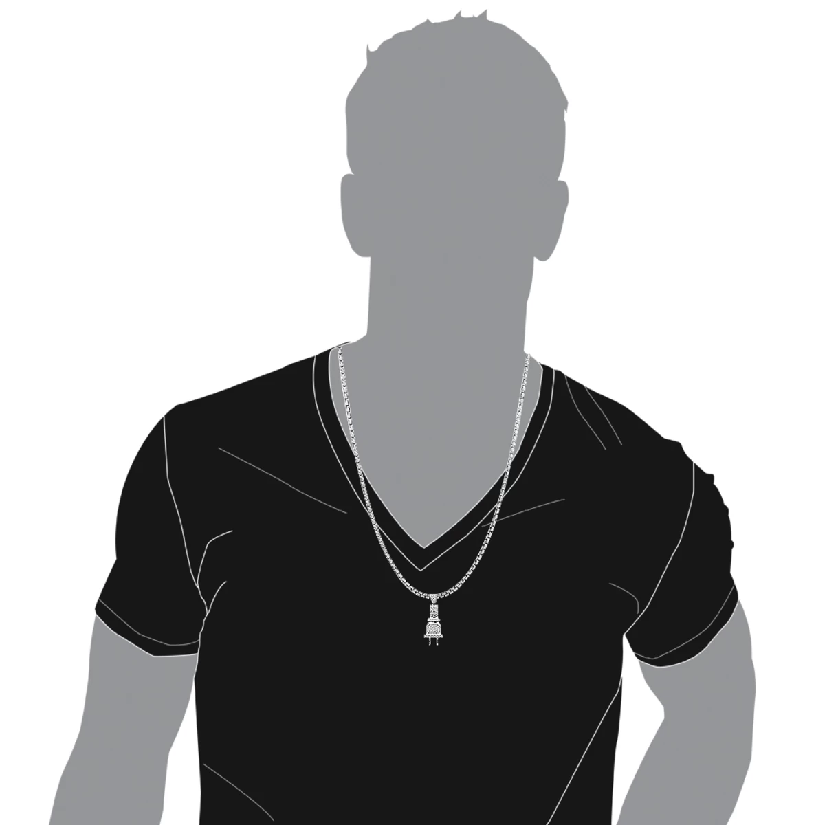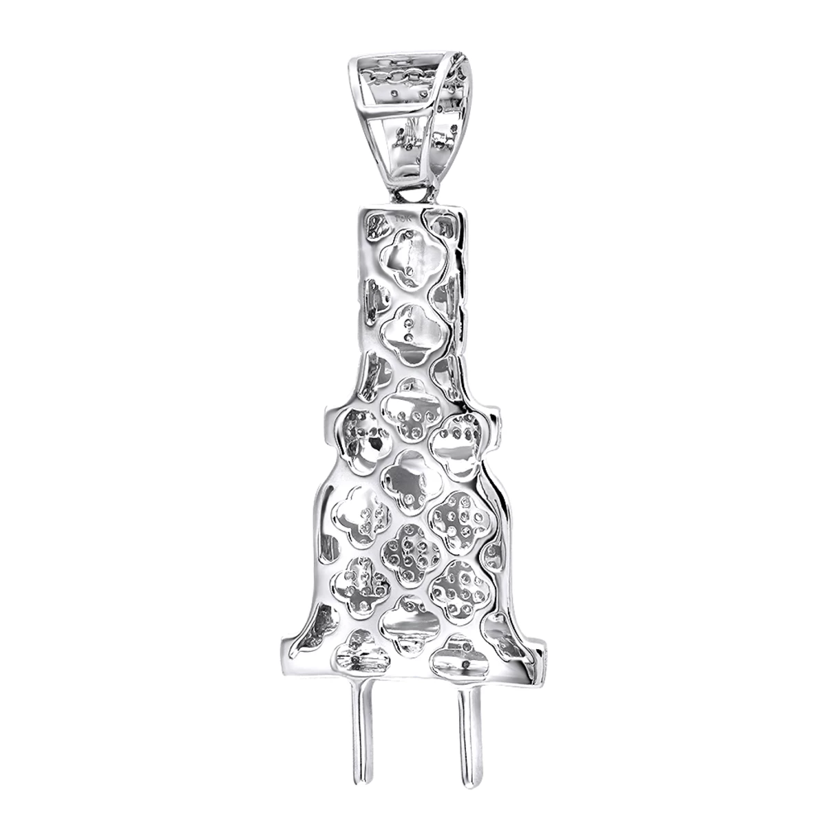 10K White Gold Power Plug Real Diamond Pendant For Men 0.5ct By Luxurman 1.8in