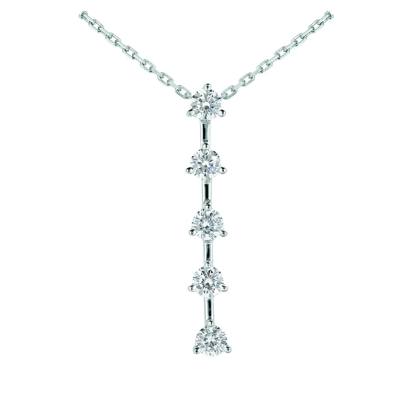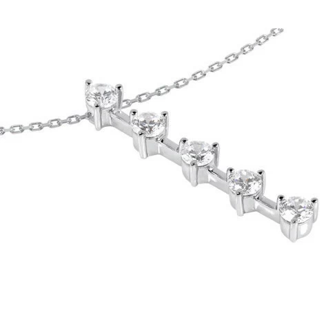14K White Gold 5 Stone Round Diamond Journey Necklace 0.75ct