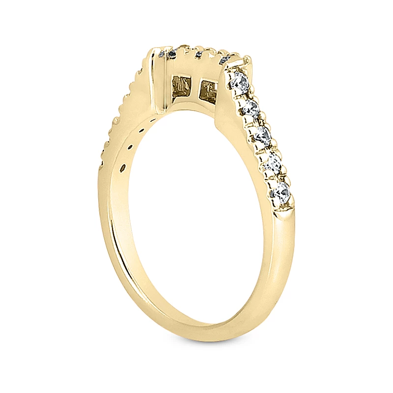 This 14K Gold Designer Diamond Engagement Ring weighs approximately 3.22 grams and showcases 0.15 carats of dazzling round diamonds and is available in Platinum, 18k or 14k yellow, rose, white gold, various sizes, and can be customized with any color and quality diamonds. Please contact us if you would like to customize it.