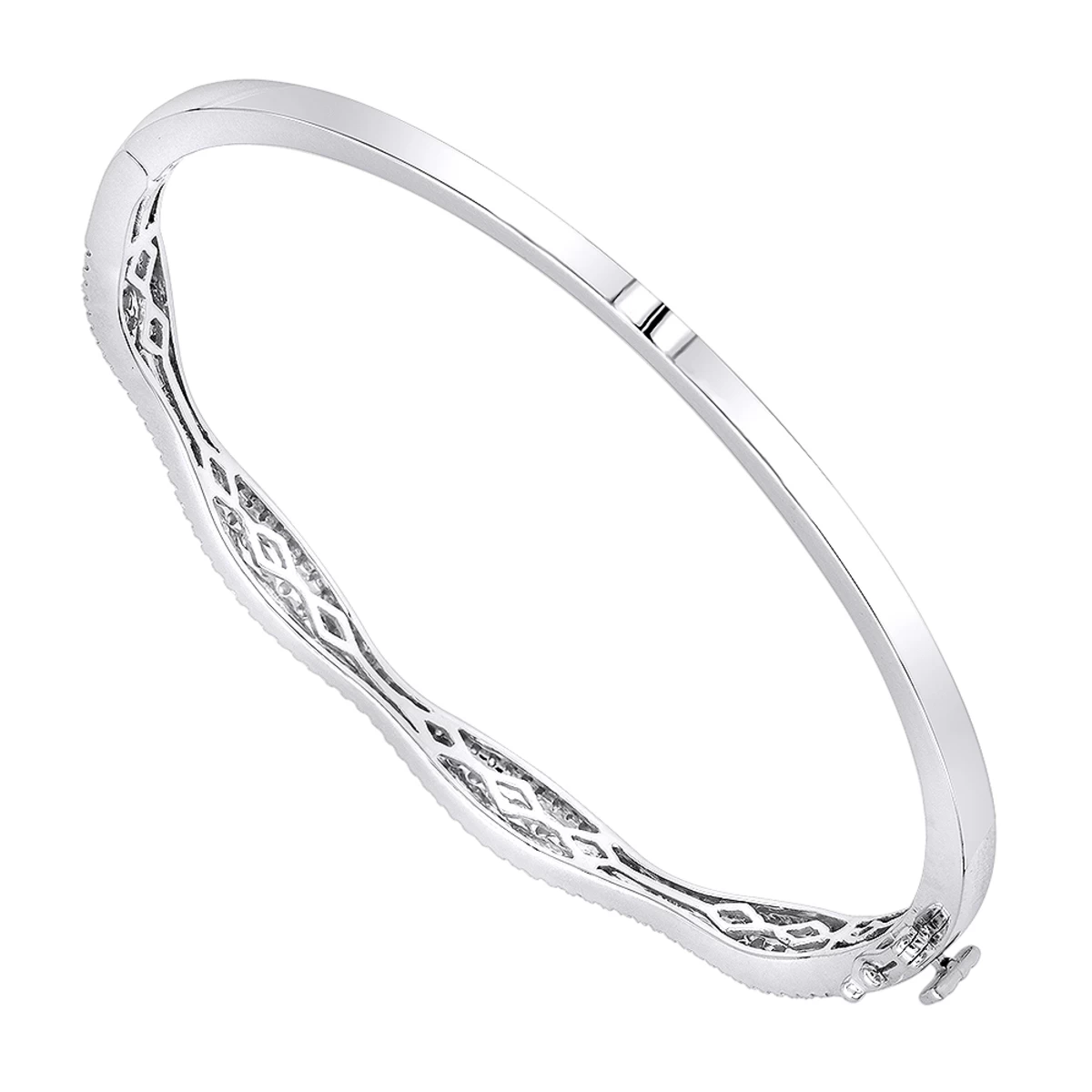 14K White Gold Diamond Bangle Bracelet For Women 1ct By Luxurman
