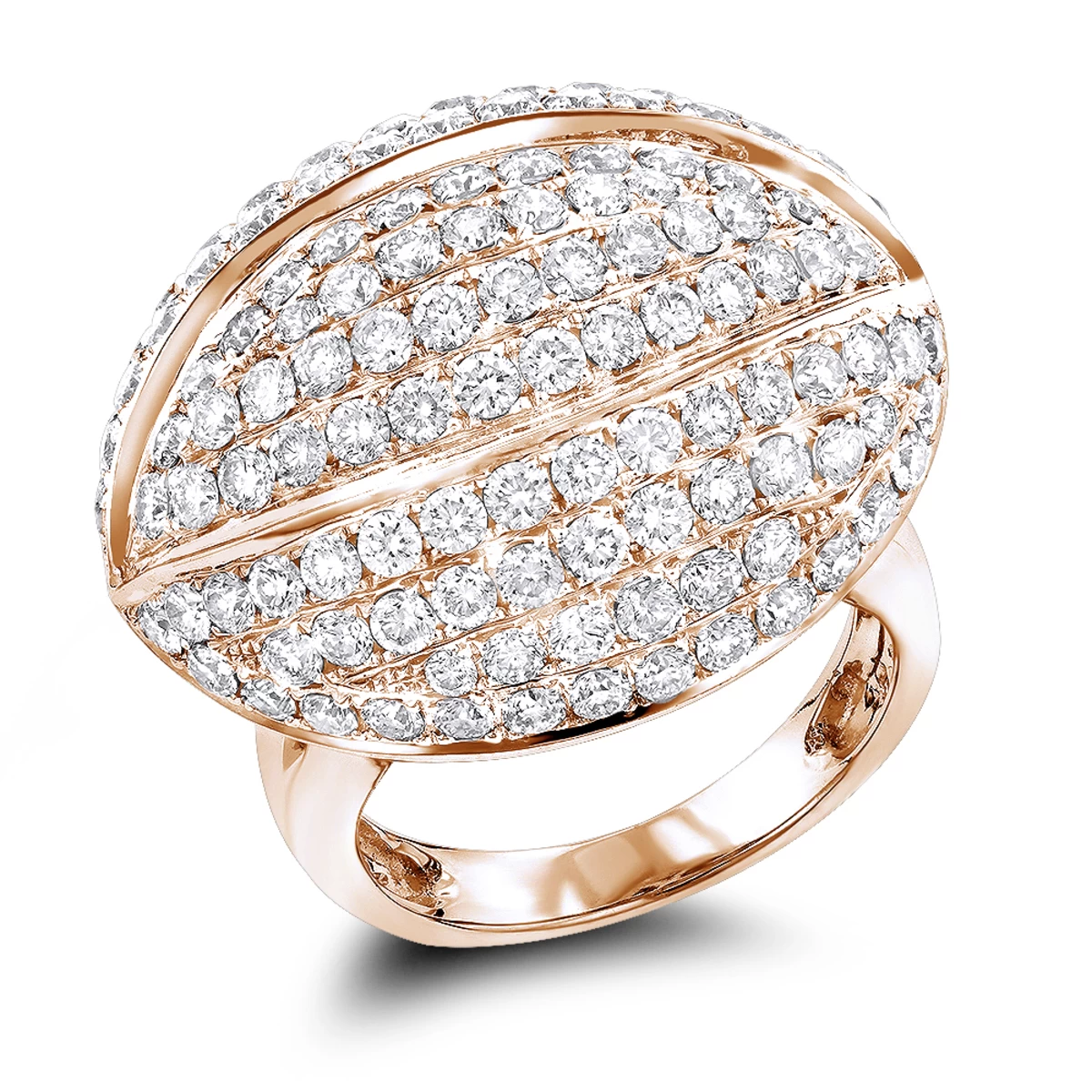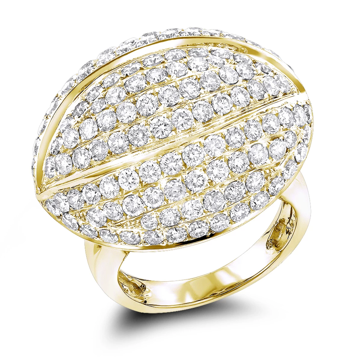 This 14K Gold Diamond Cocktail Ring showcases 4.53 carats of dazzling round brilliant diamonds. Featuring a luxurious 3-D design and a highly polished gold finish, this ladies diamond fashion ring is available in 14K white, yellow and rose gold.