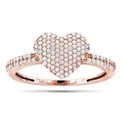 This 14K Gold Diamond Heart Ring for women showcases 0.39 carats of round diamonds. Featuring a lovely design and a highly polished gold finish, this ladies diamond ring can be ordered in 14K white, yellow and rose gold; please check availability.