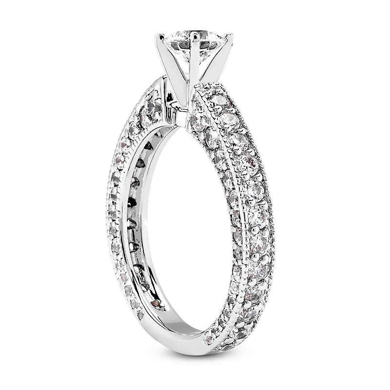 14K White Gold Diamond Unique Engagement Ring 1.43ct 2.3mm