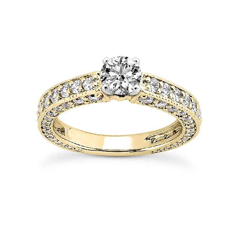 This 14K Gold Diamond Unique Engagement Ring showcases a 0.50 carat round diamond in the center and 0.93 carats of round diamonds on the sides for a total of 1.43 carat of dazzling diamonds and is available in Platinum, 18k or 14k yellow, rose, white gold, various sizes, and can be customized with any color and quality diamonds. Center diamond can be from 0.50ct to 5ct (gold weight and number of stones may vary). Please note: it will take us 3-5 business days to make this ring for you so please plan accordingly. Please contact us at 212-398-3123 if your size or desired option is not listed.