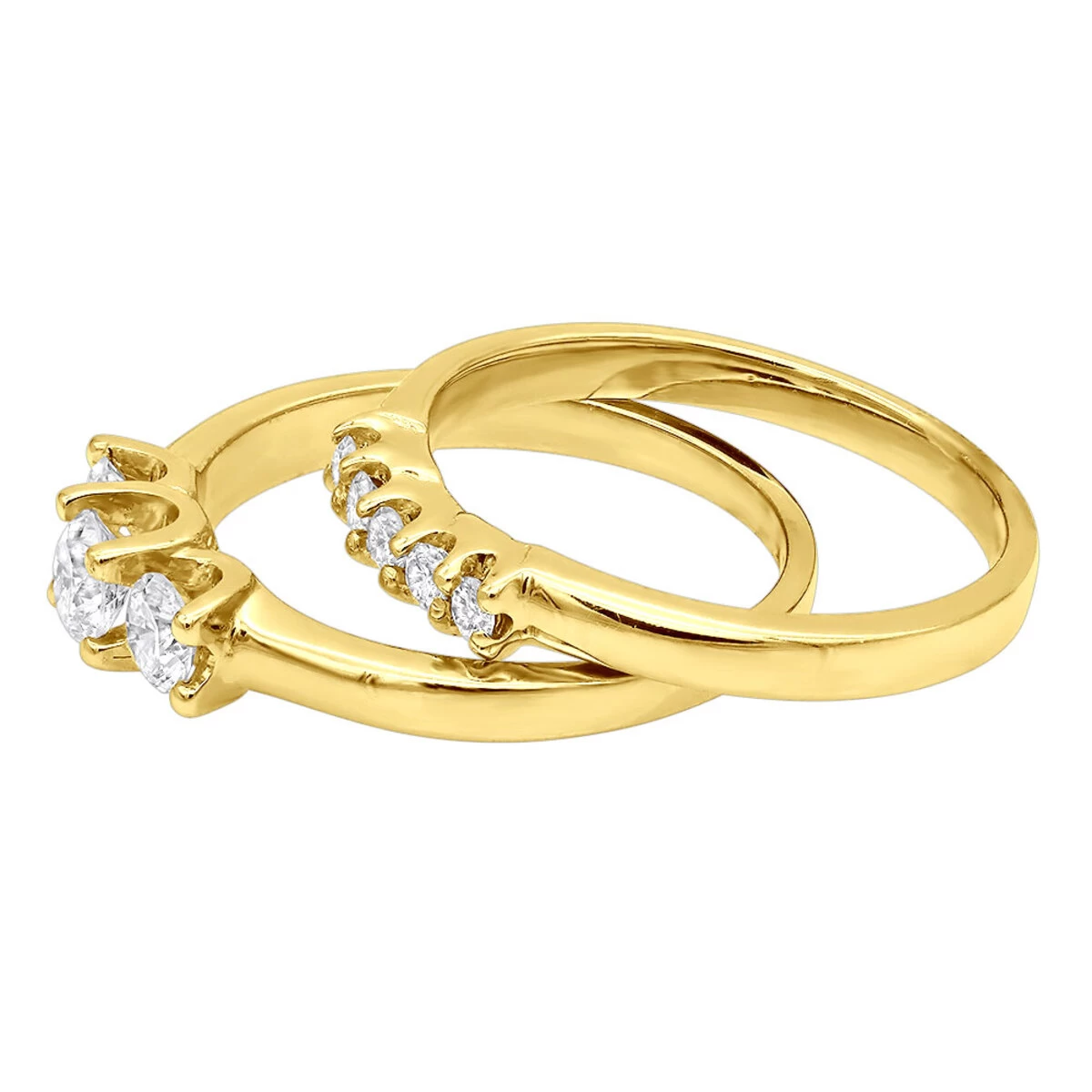 This 14K Gold Designer Diamond Engagement Ring set consists of a diamond engagement ring and matching diamond band. The ring weighs approximately 2.83 grams and showcases a 0.25 carat round diamond in the center and 0.30 carats of round diamonds on the sides for a total of 0.55 carats of dazzling diamonds. The Engagement band weighs approximately 2.83 grams and showcases 0.15 carats of dazzling round diamonds. This set is available in Platinum, 18k or 14k yellow, rose, white gold, various sizes, and can be customized with any color and quality diamonds. Please contact us if you would like to customize it.