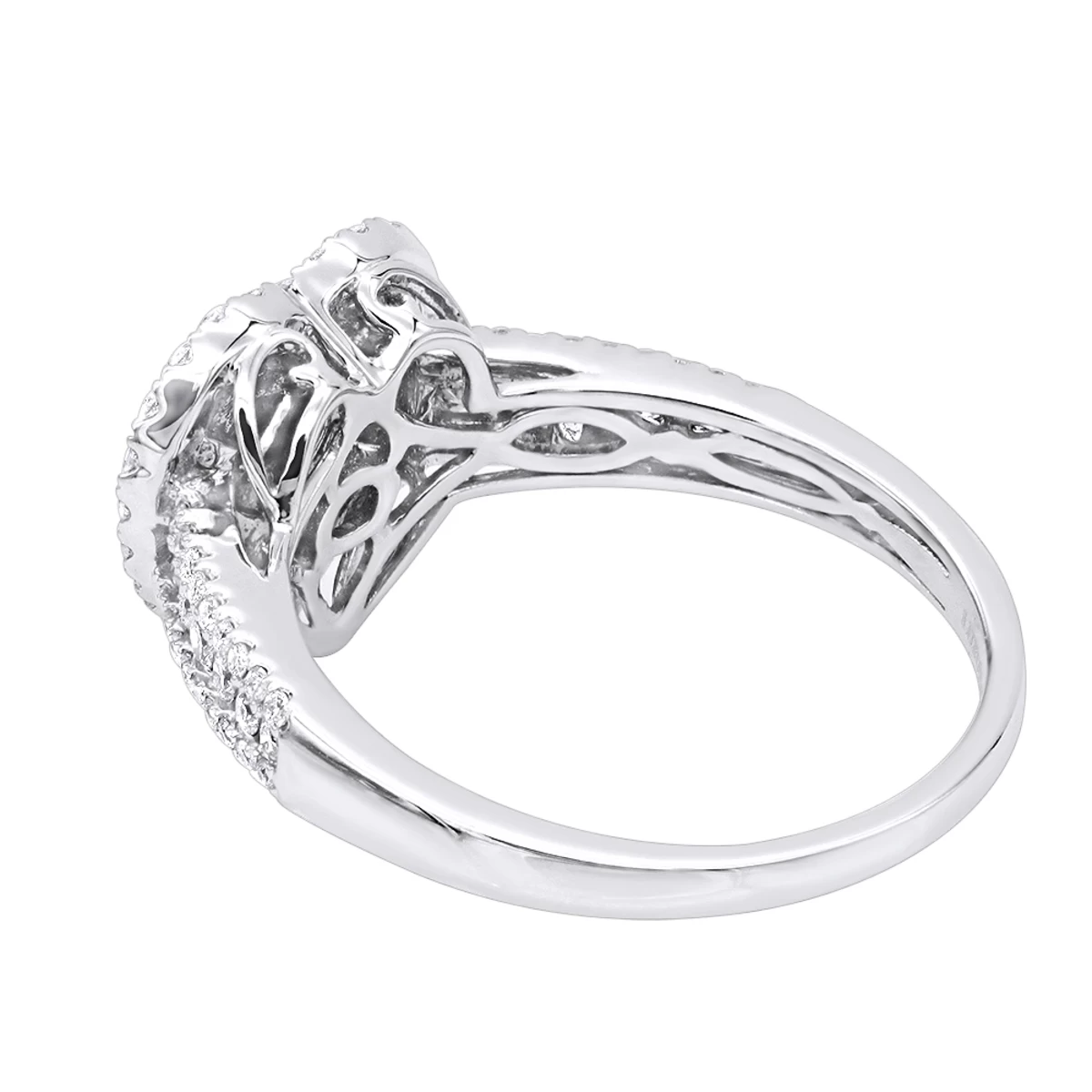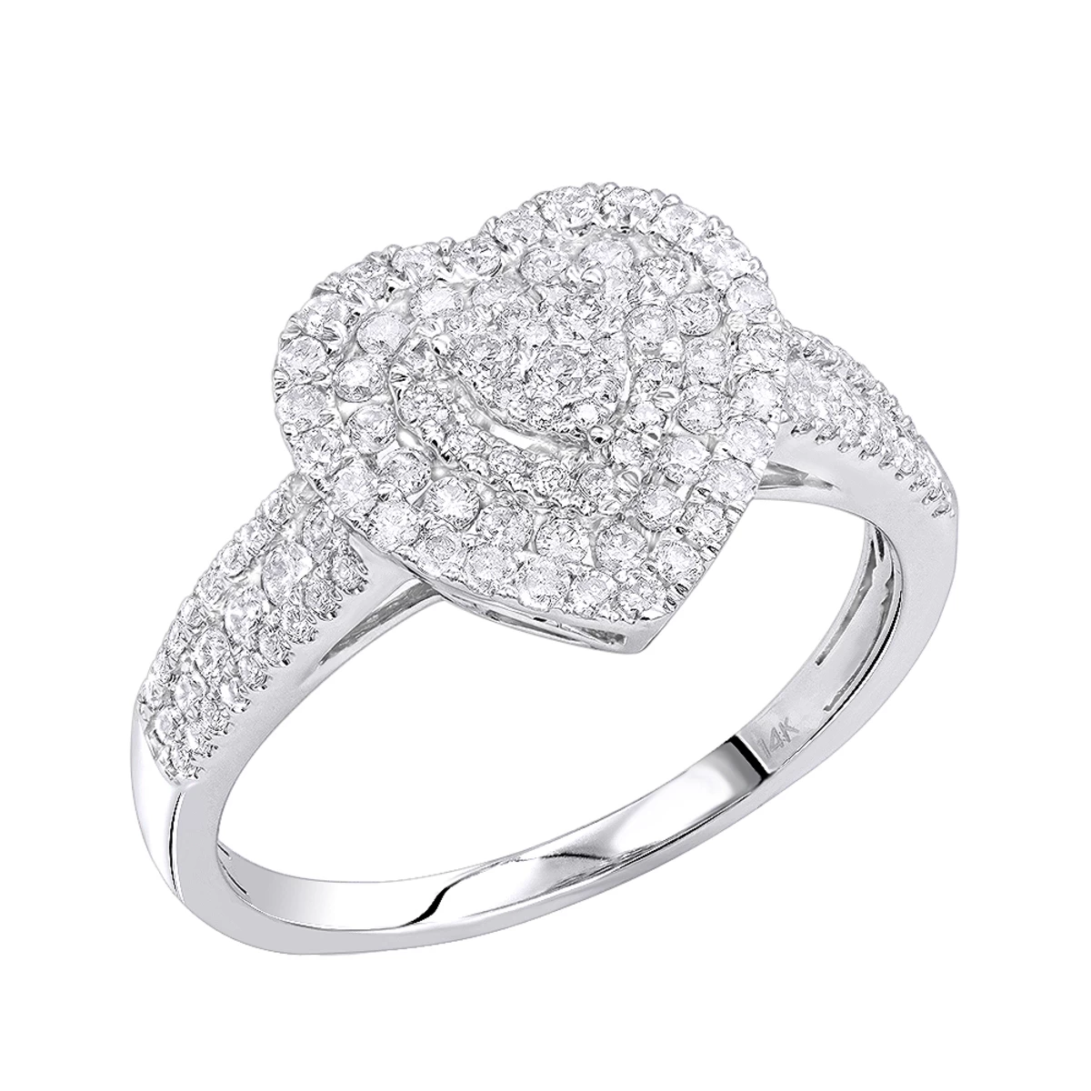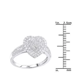 14K White Gold Heart Diamond Ring For Women Cluster Setting 0.8ct By Luxurman