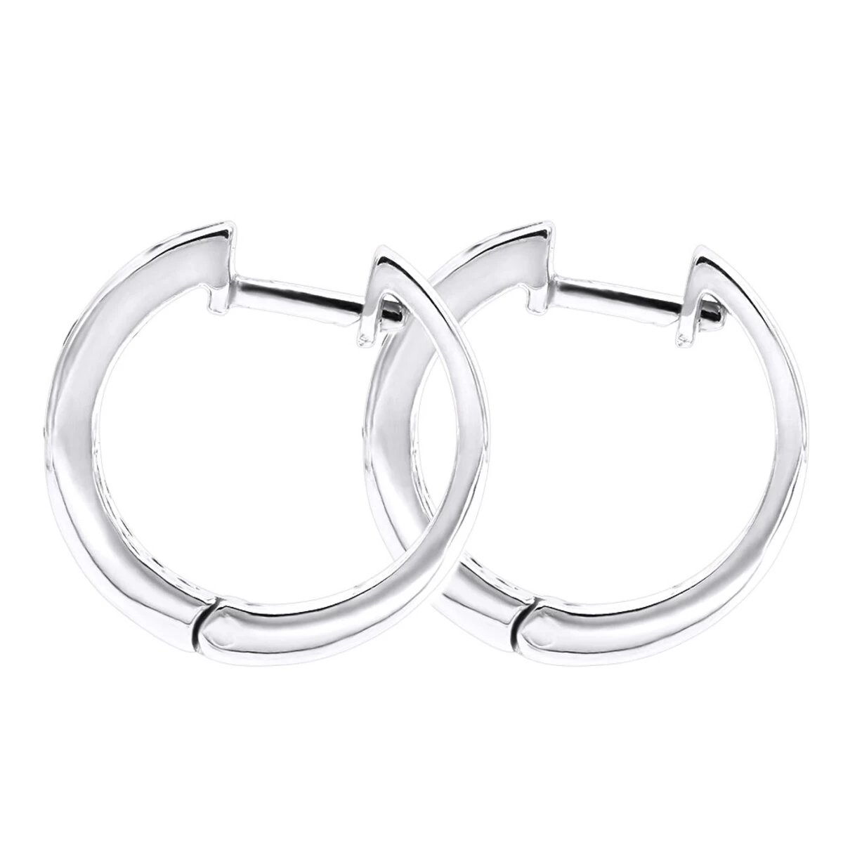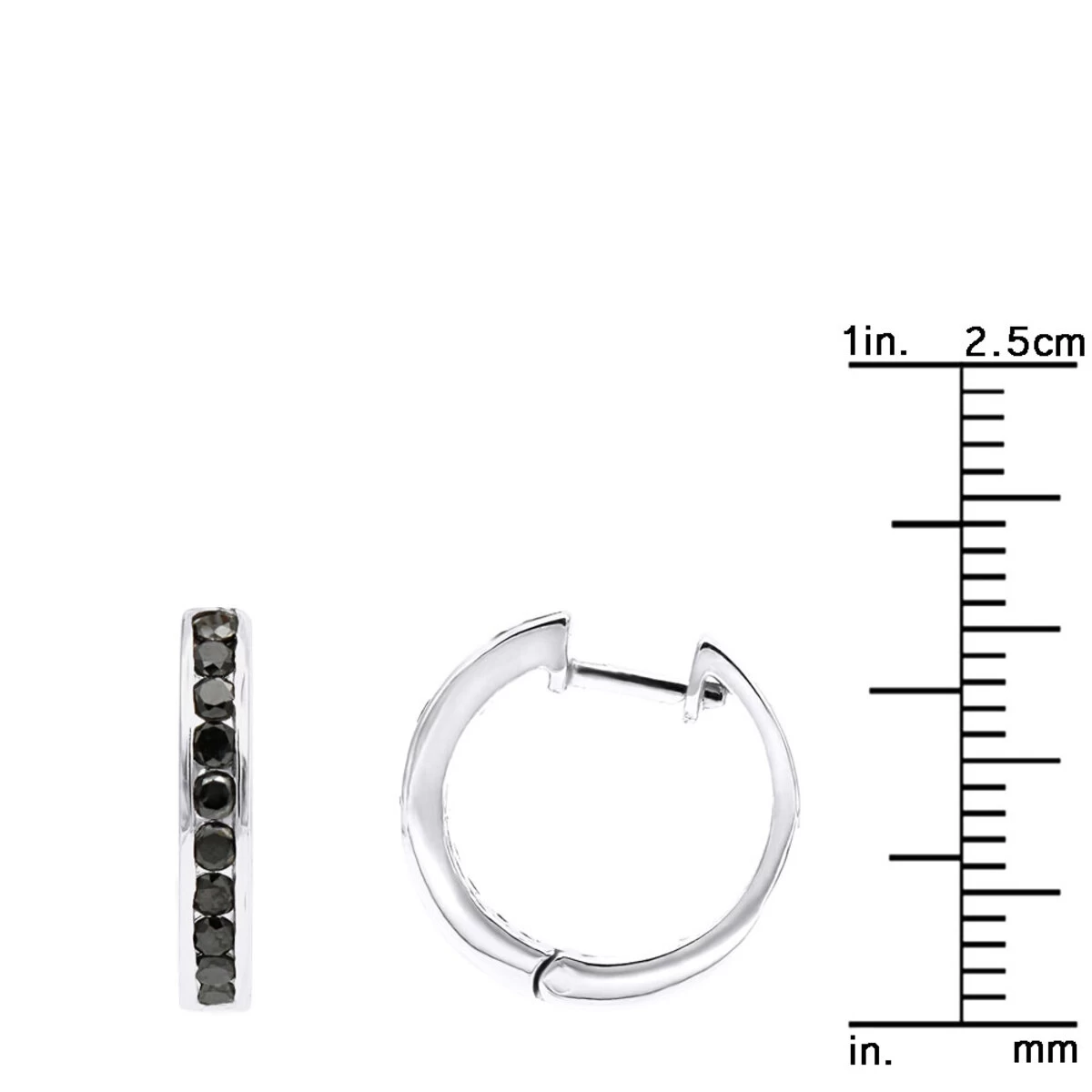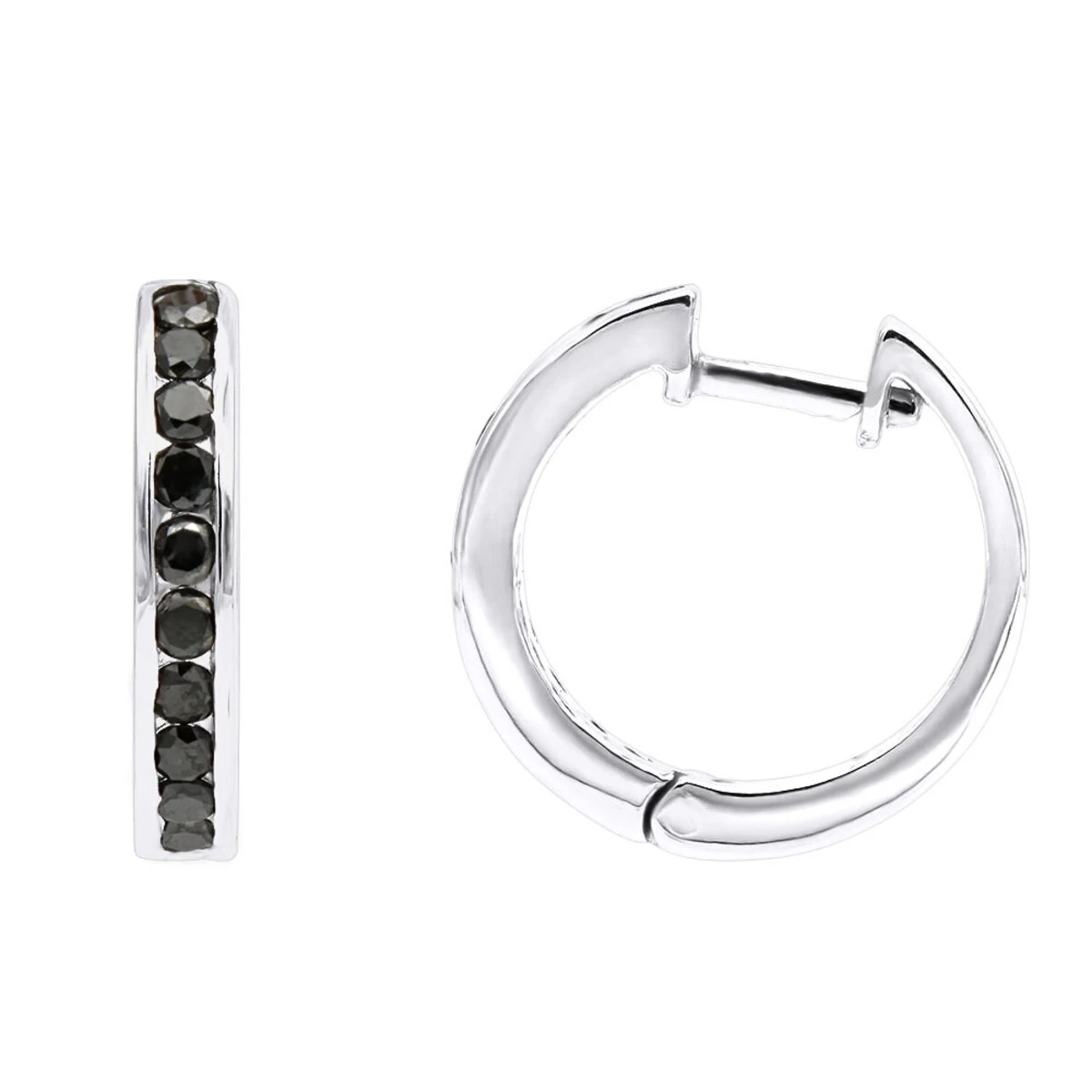 14K White Gold Hoop Huggie Black 0.6 Carat Diamond Earrings For Women