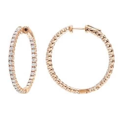 14K White Gold Inside Out 3 Carat Hoops Diamond Earrings For Women By Luxurman