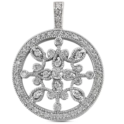 14K White Gold Ladies Circle Diamond Necklace 0.80ct 23.8mm