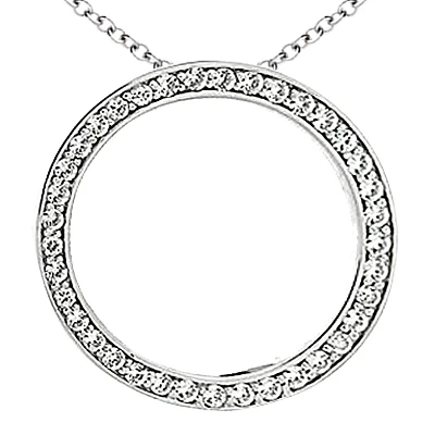 14K White Gold Ladies Circle Diamond Necklace 1.11ct