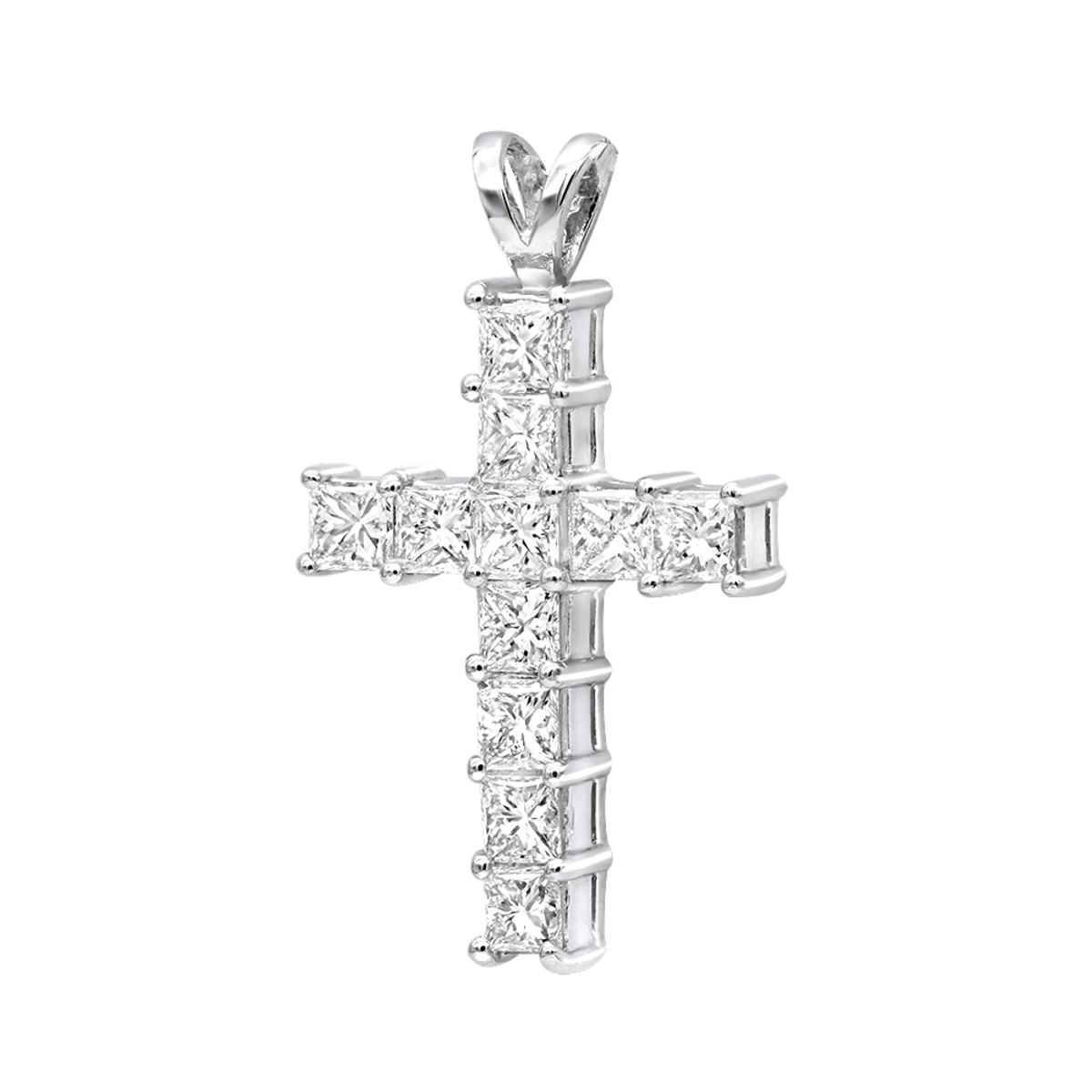 14K White Gold Princess Cut Diamond Cross Pendant 2.20ct