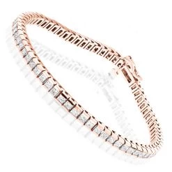 From our ladies diamond bracelets collection This fabulous 14K Gold Princess Cut Diamond Tennis Bracelet showcases 4.83 carats of bar-set princess cut diamonds. This princess cut diamond tennis bracelet is the perfect accessory for anyone who doesnt particularly seek out loud jewelry, but appreciates the significance of eye-catching luster. Available in 14K white, yellow and red gold.