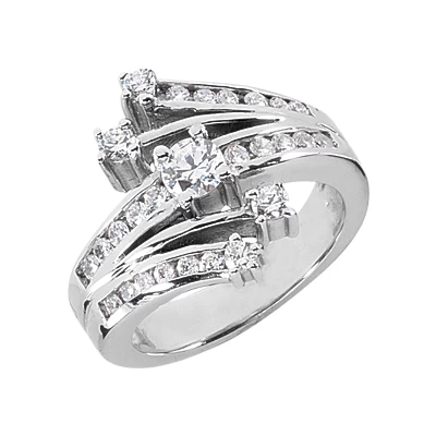 14K White Gold Right Hand Diamond Ladies Ring 0.79ct