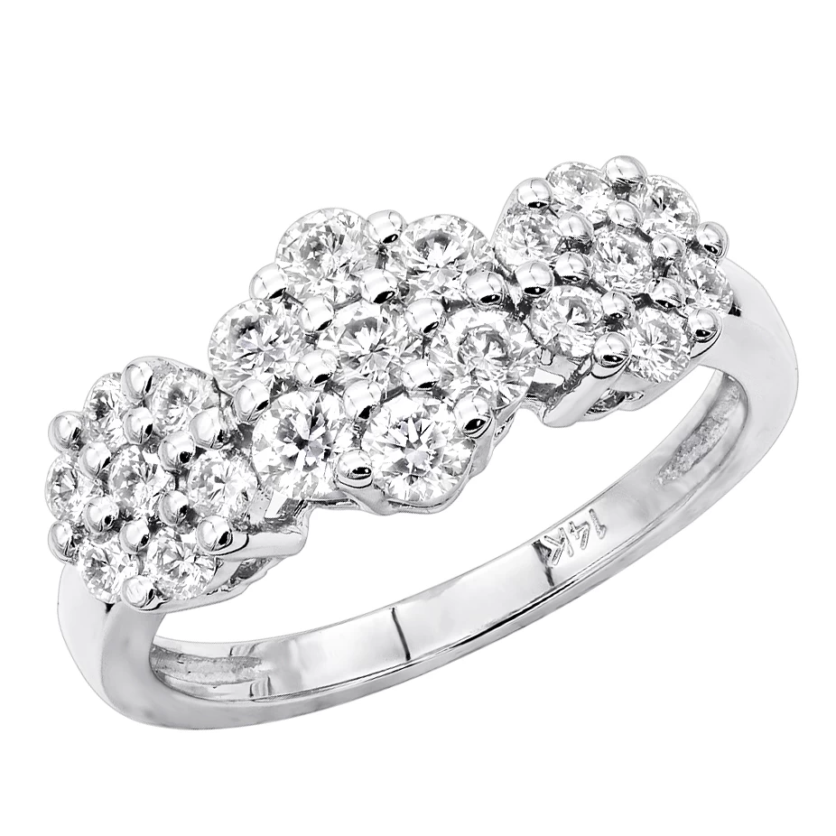 14K White Gold Round Diamond Cluster Ring Flower 0.78ct