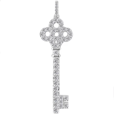 14K White Gold Round Diamond Key Pendant 0.91ct