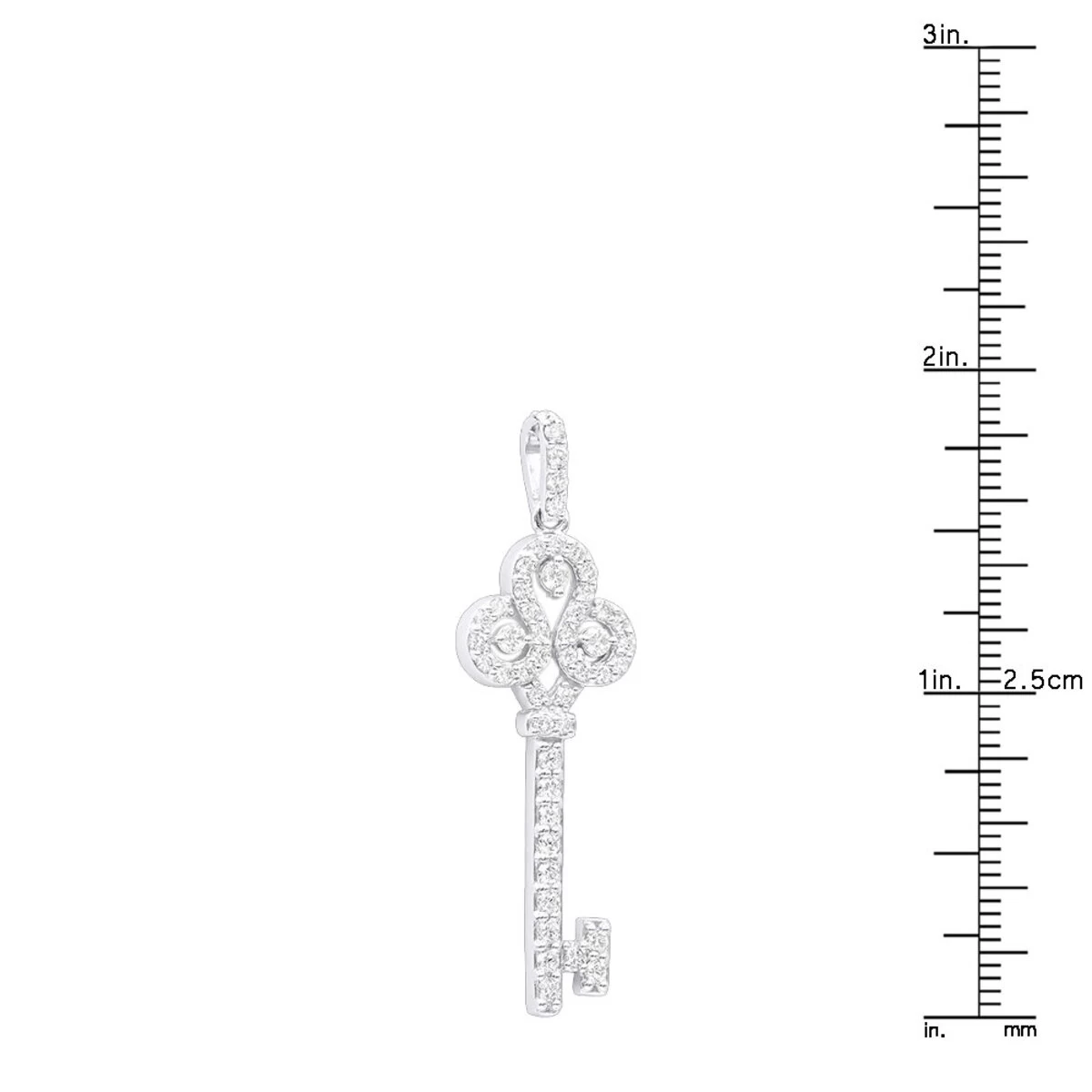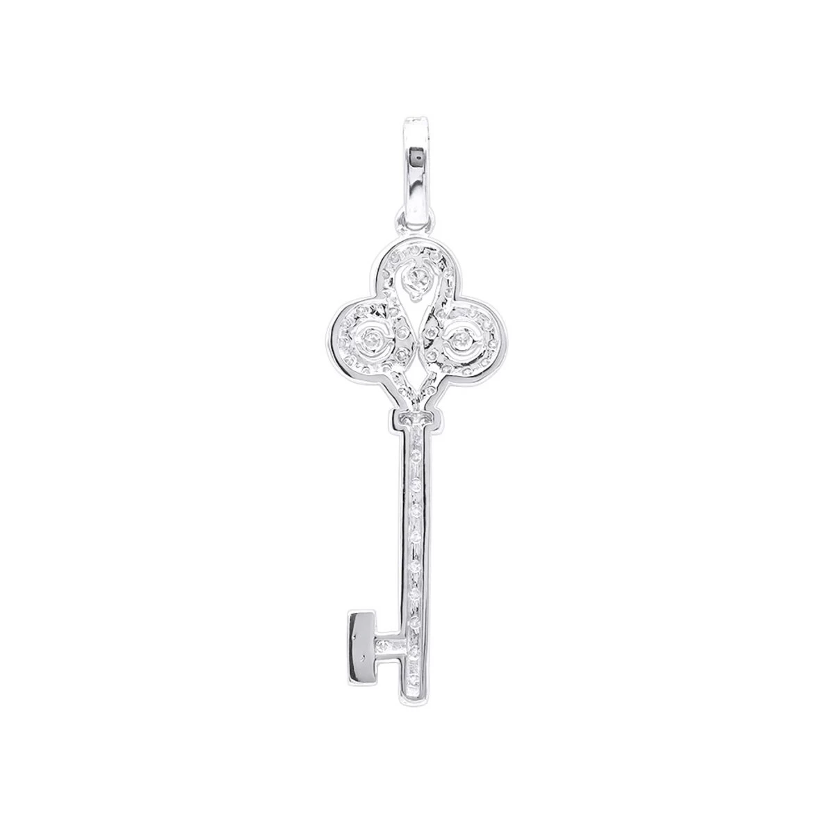 14K White Gold Round Diamond Key Pendant 1.57ct