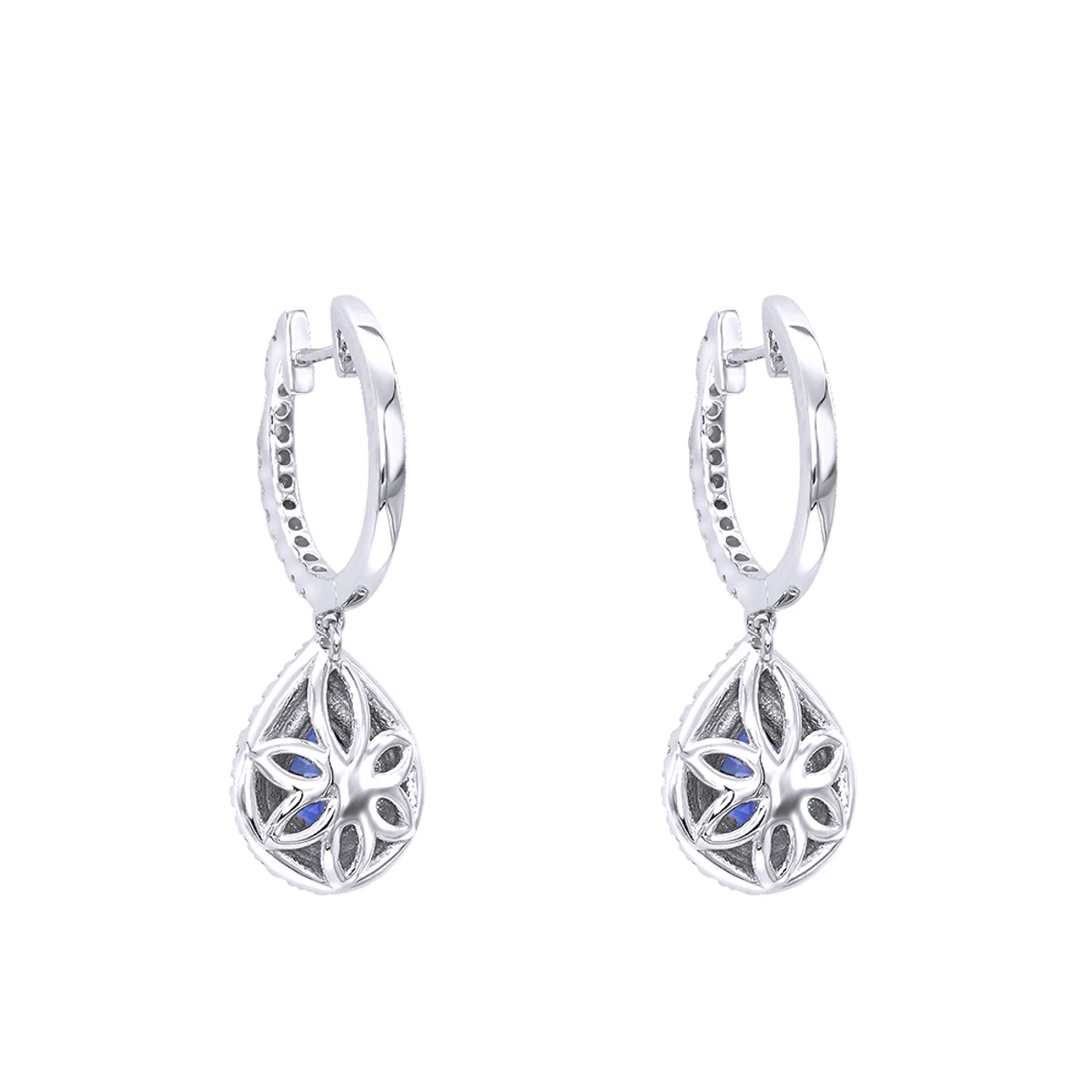 14K White Gold Sapphire Diamond Pear Shape Drop Earrings For Women By Luxurman