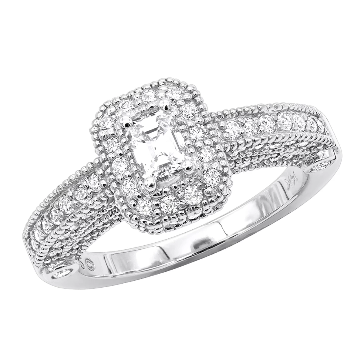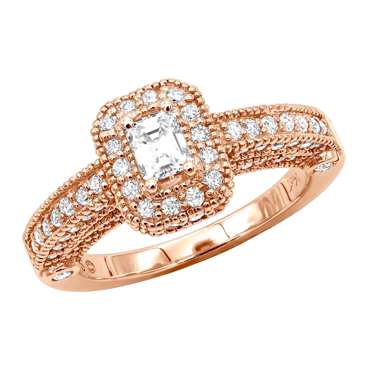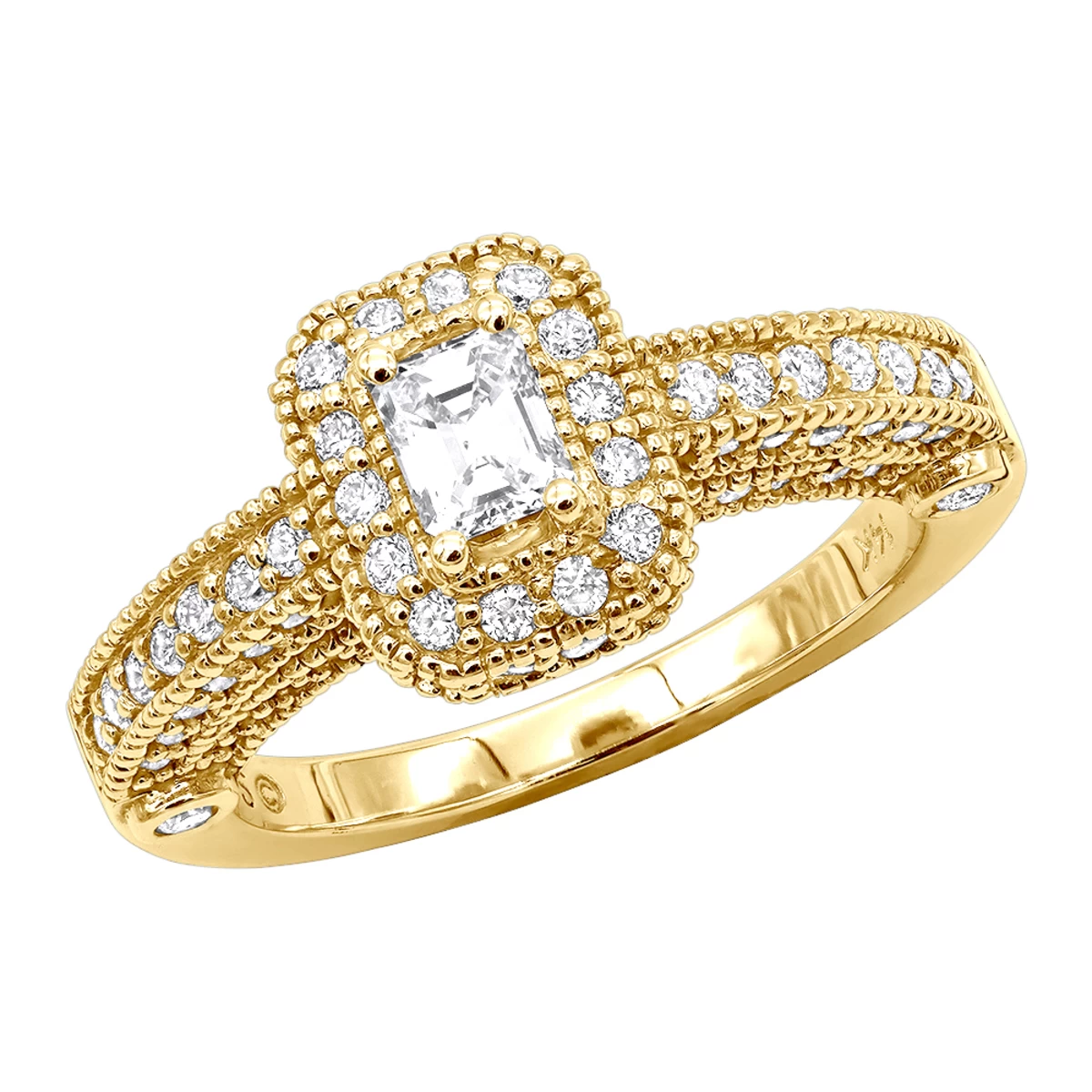 This 14K Gold Unique Diamond Engagement Ring showcases a 0.25 carat emerald cut diamond in the center and 0.84 carats of round diamonds on the sides for a total of 1.09 carat of dazzling diamonds and is available in Platinum, 18k or 14k yellow, rose, white gold, various sizes, and can be customized with any color and quality diamonds. Center diamond can be from 0.25ct to 2.50ct (gold weight and number of stones may vary). Please note: it will take us 3-5 business days to make this ring for you so please plan accordingly. Please contact us at 212-398-3123 if your size or desired option is not listed.