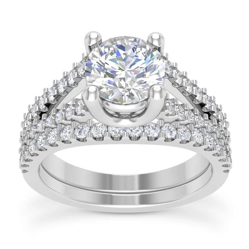 14K White Gold Unique Diamond Engagement Ring Set 0.92ct