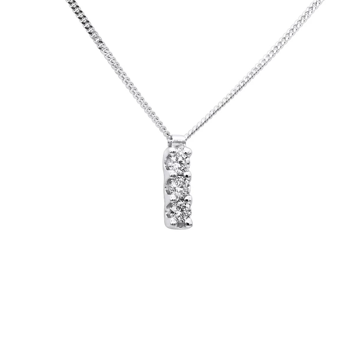 Ladies diamond pendants collection: This 3 Stone Diamond Journey Pendant features 0.30 carats of round diamonds (3 diamonds). This 3 stone diamond journey pendant is available in 14k white gold, yellow gold, rose gold as well as in Platinum and 18k as a custom order. Please note: it will take us 3-5 business days to make this pendant for you so please plan accordingly. This ladies pendant is pictured with a Cuban link chain which is sold separately. You also can personalize this piece or check we’ve already made and create your own design.