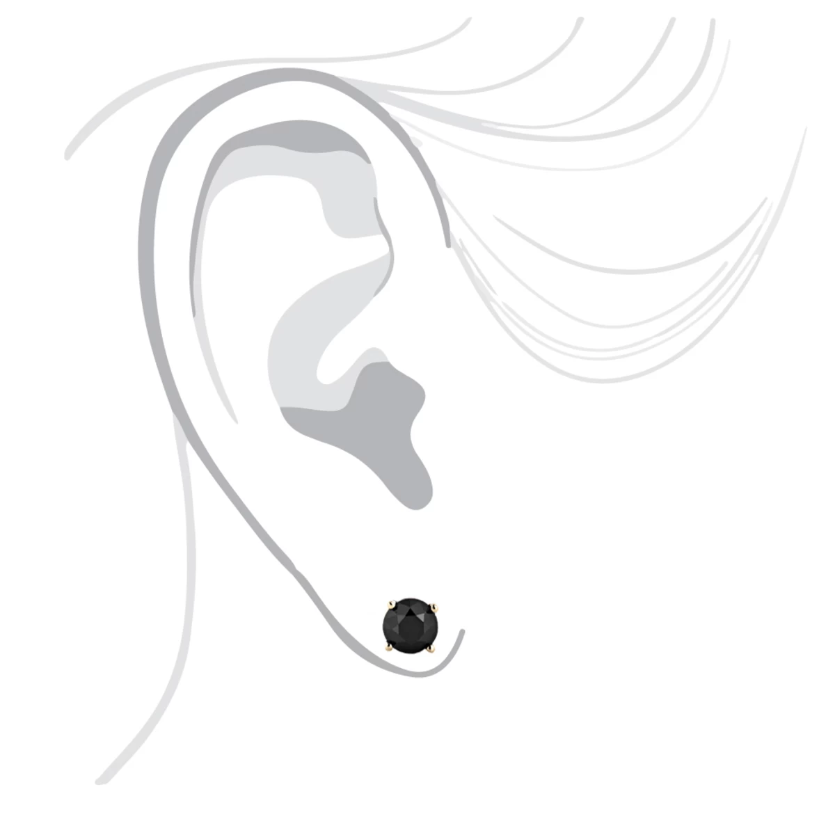 14K Yellow Gold Black Diamond Earrings Prong Set Studs 1.25ct