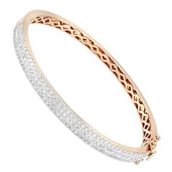 This gorgeous 14K Gold Designer Diamond Bangle Bracelet for Women by Luxurman weighs approximately 16 grams and showcases 2 carats of sparkling round cut white diamonds masterfully pave set in shiny 14K gold. Featuring a luxurious and classy design and great attention to detail, this fabulous ladies diamond bracelet available in 14K white gold, yellow gold and rose gold.