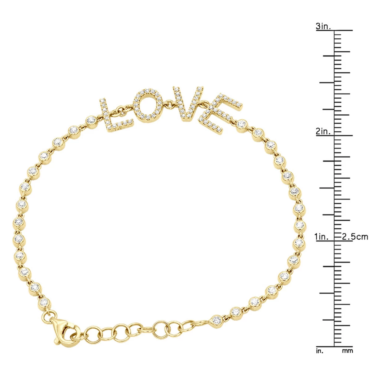 14K Yellow Gold Inline Diamond Tennis Bracelet For Women With LOVE Round Diamonds 0.8ct