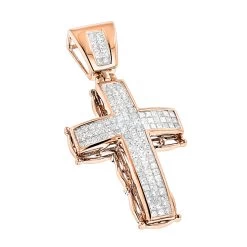 This inspiring 14K Gold Men’s Cross Pendant with Princess Diamonds weighs approximately 9 grams and showcases 2.25 ctw of exquisite princess cut diamonds, each invisibly set in a highly polished gold frame. Featuring an iced out bail and a fine gallery back, this men’s diamond cross pendant in available in 14K white, yellow and rose gold. You also can personalize this piece or check we’ve already made and create your own design.