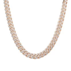 This incredible 15 Carat Diamond Cuban Link Chain Necklace in 14k Gold is meticulously incrusted with numerous sparkling white round pave set diamonds. This striking necklace is 1/2in. (12mm) wide and makes a dazzling statement. Expertly crafted to meet the highest industry standards, it was designed to be worn without any need for further jewels due to it’s eye-catching, attention demanding style of a classic Miami Cuban chain with every link and even lock decorated with diamonds including a custom diamond lock. Astound everyone with this luxurious top quality jewelry piece available in 14K white, yellow or rose gold. The price listed is for a choker chain in 19.5 inches long, 12mm wide, but if you need the chain to be longer or any other width please contact us and we can custom make it for you to your full specifications (also with different color or quality diamonds).
