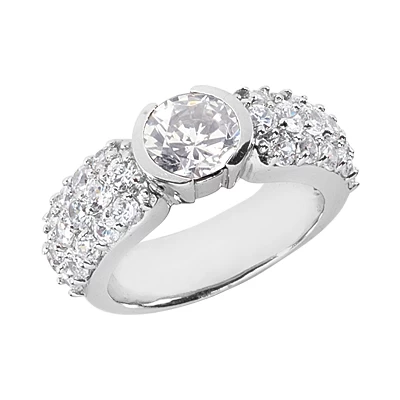 18K White Gold Round Diamond Ladies Ring 2.40ct 6.2mm