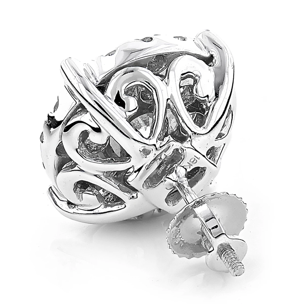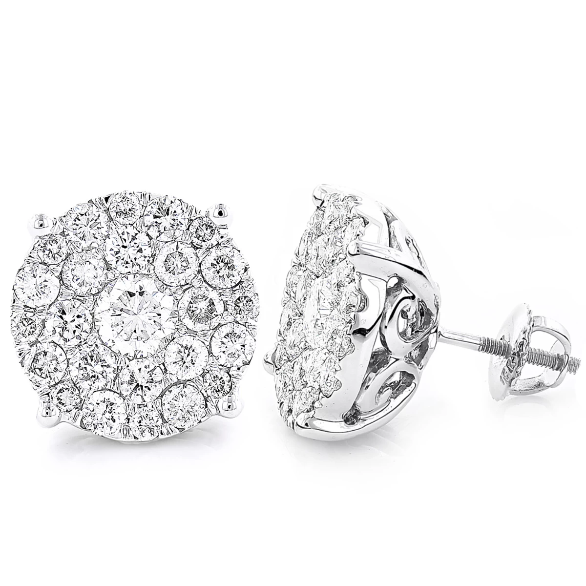 18K White Gold Round Diamond Stud Earrings 4ct Oversized Cluster Earrings