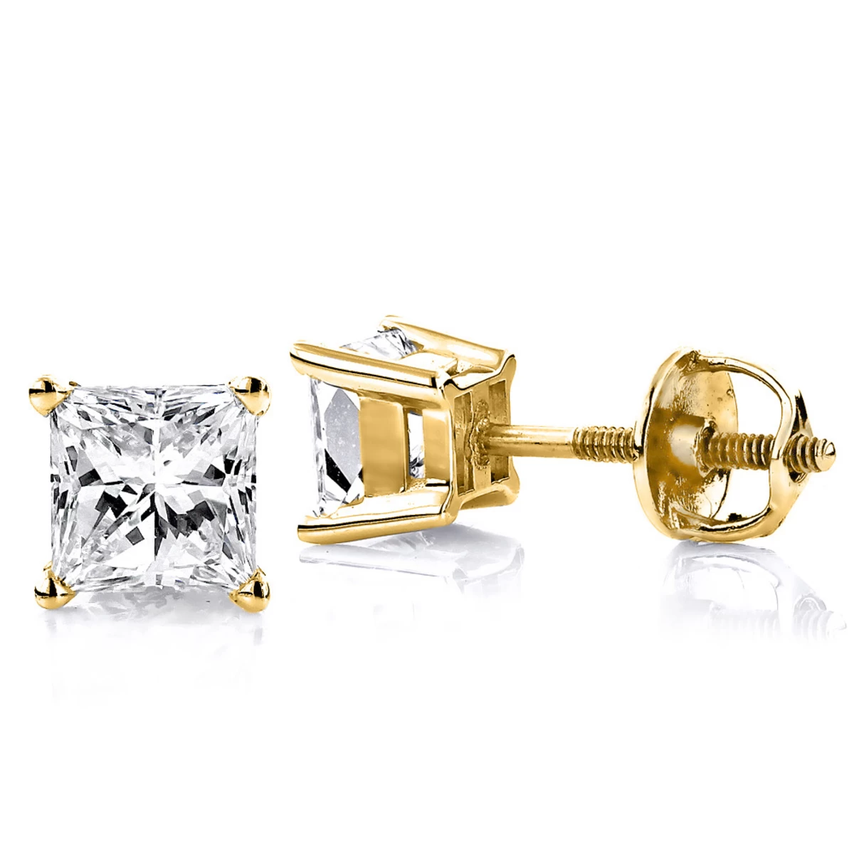Introducing the Luxurman 18K Gold Solitaire Princess Cut Diamond Stud Earrings 0.75ct. These stunning earrings are the perfect way to add a touch of elegance and sophistication to any look. Crafted from 18K gold in your choice of white, yellow, or rose, these earrings feature a 0.75ct princess cut diamond set in a prong, solitaire setting. The diamond is SI clarity, ensuring a beautiful sparkle and shine.These earrings are perfect for any occasion, from a night out on the town to a special event. They are also unisex, so they can be worn by anyone. The earrings come with a secure screw back, so you can be sure they will stay in place all night long.The Luxurman 18K Gold Solitaire Princess Cut Diamond Stud Earrings 0.75ct are the perfect way to add a touch of luxury to any look. Whether you are looking for a special gift for someone special or a way to treat yourself, these earrings are sure to make a statement. With their timeless design and classic elegance, these earrings are sure to be a treasured piece for years to come.