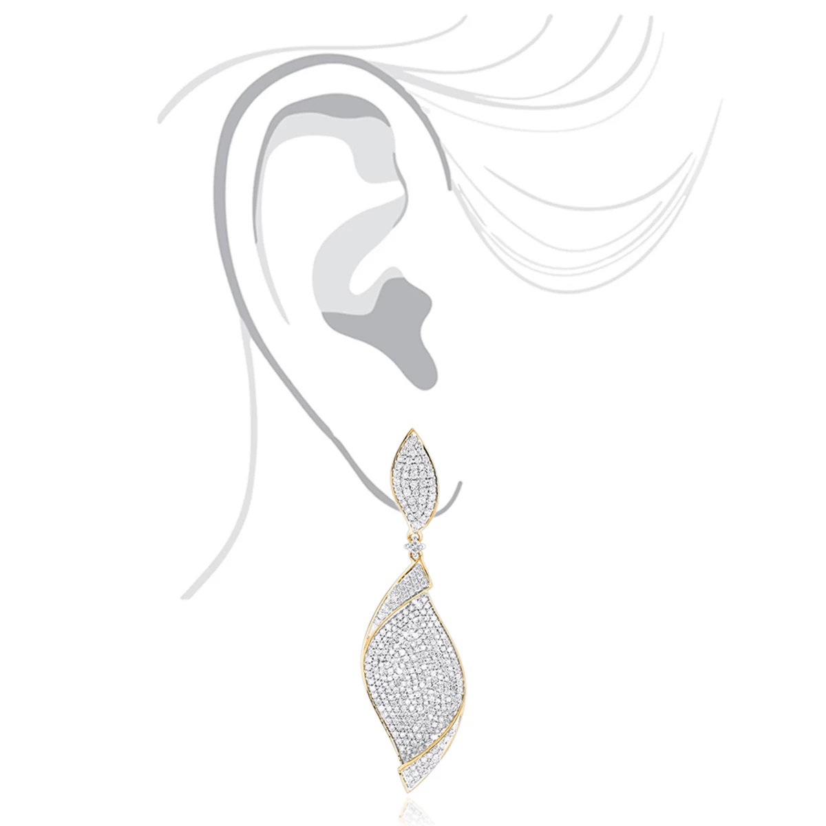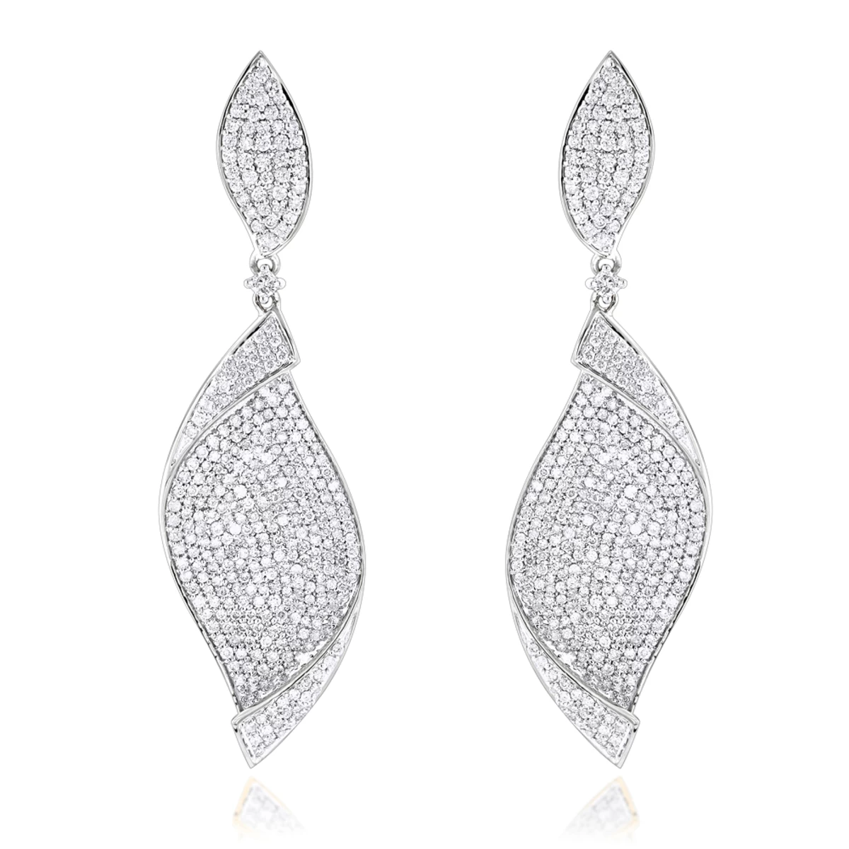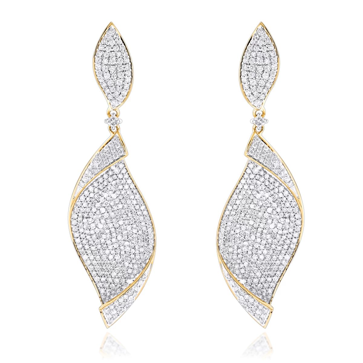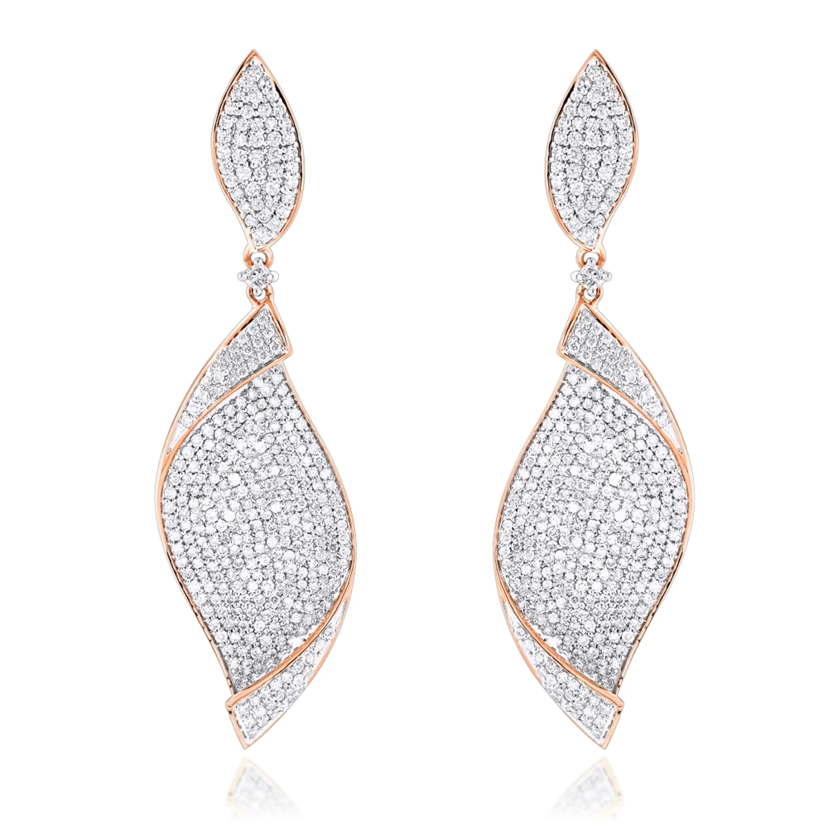 Thse 18K Gold Ladies Designer Diamond Leaf Earrings feature a unique yet classy design and 3 carats of high quality pave-set round diamonds ensures a quality piece of jewelry that will last you a life time. These diamond earrings for women are beautifully crafted in 18K Rose Gold, Yellow Gold and White Gold by Luccello. These completely royal designer diamond earrings will definitely be your favorite choice for any special occasion.