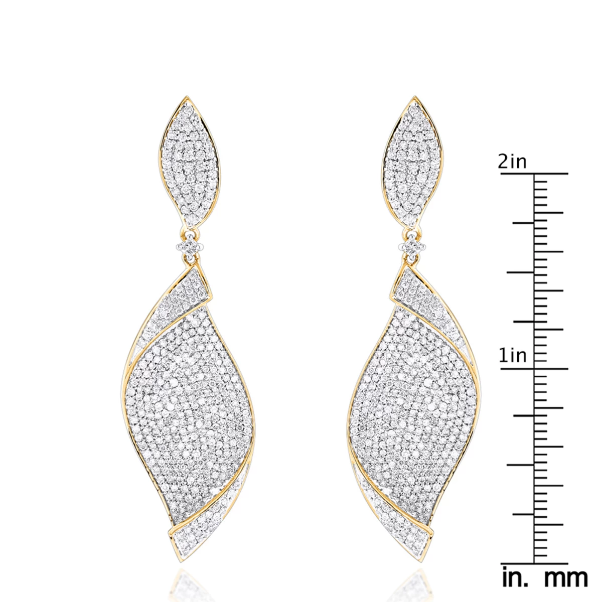 18K Yellow Gold Ladies Designer Diamond Leaf Earrings 3 Carats