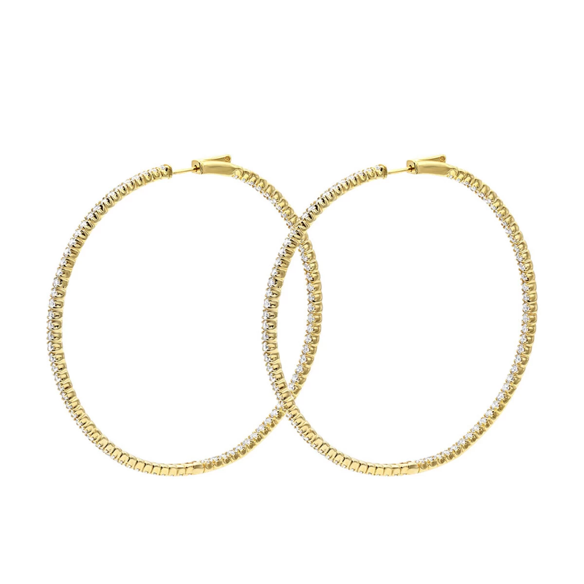 2.5 Inch Inside Out Diamond Hoop Earrings For Women 5 Carat VS Diamonds 14K Yellow Gold