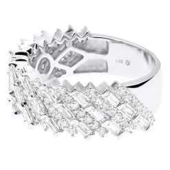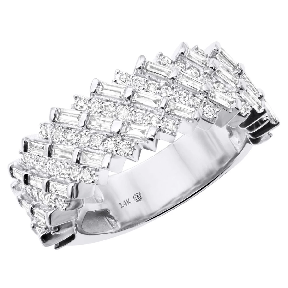 2 Carat Ladies Round & Baguette Diamonds 14K White Gold Ring Unique Wedding Band