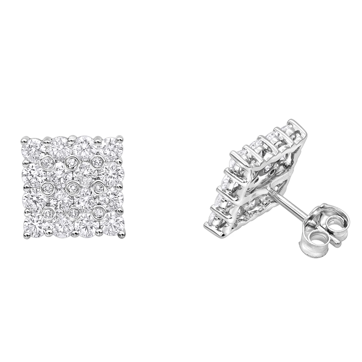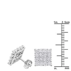 Luxurman Diamond Stud Earrings: These amazing Square Shape Round Diamond Earrings Studs in 14k gold feature popular square earrings design done with uniquely cluster set round diamonds totalling full 2 carats but making these stud earrings look like 4 carat earrings because of very unique setting style. Featuring a classy design and a highly polished gold finish, these square diamond earrings studs are available in 14K white gold, yellow gold and rose gold.