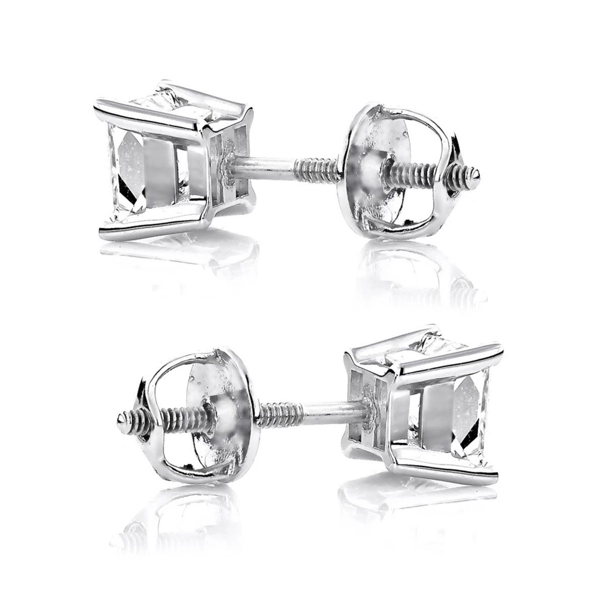 2ct Princess Cut Diamond Platinum Stud Earrings