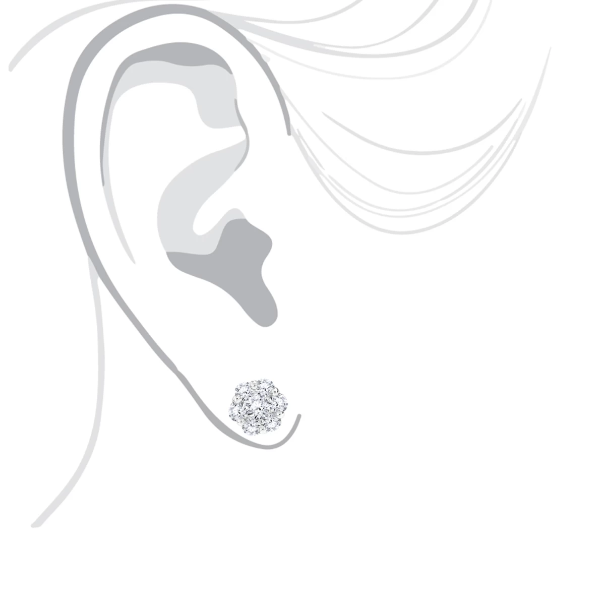 6 Carat Look Large Diamond Cluster Earrings 14K White Gold Studs 2 Carats