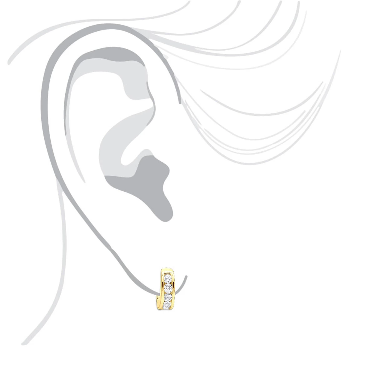9mm Huggies 14K Yellow Gold Small Diamond Hoop Earrings For Children 0.15ct