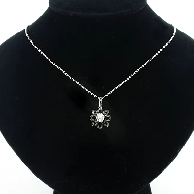 Black And White Diamond Flower Lace Pendant 0.30ct 14K White Gold