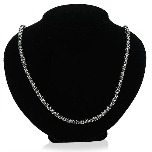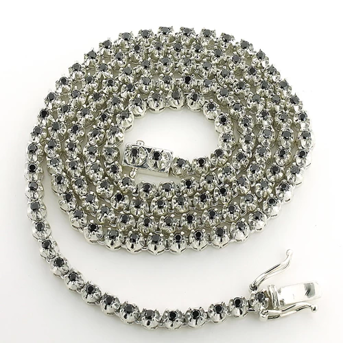 Trendy Black Diamond Jewelry: This Eternity Diamond Necklace Chain in Sterling Silver showcases 1 row of dazzling prong-set round diamonds totaling from about carats (in 18 inches length) to 9.55 carats (in 30 inches length). Featuring a luxurious design, impeccably crafted to meet the highest industry standards, this black diamond chain necklace is fully customizable and can be ordered in any length and with any color diamonds; please contact us for details.