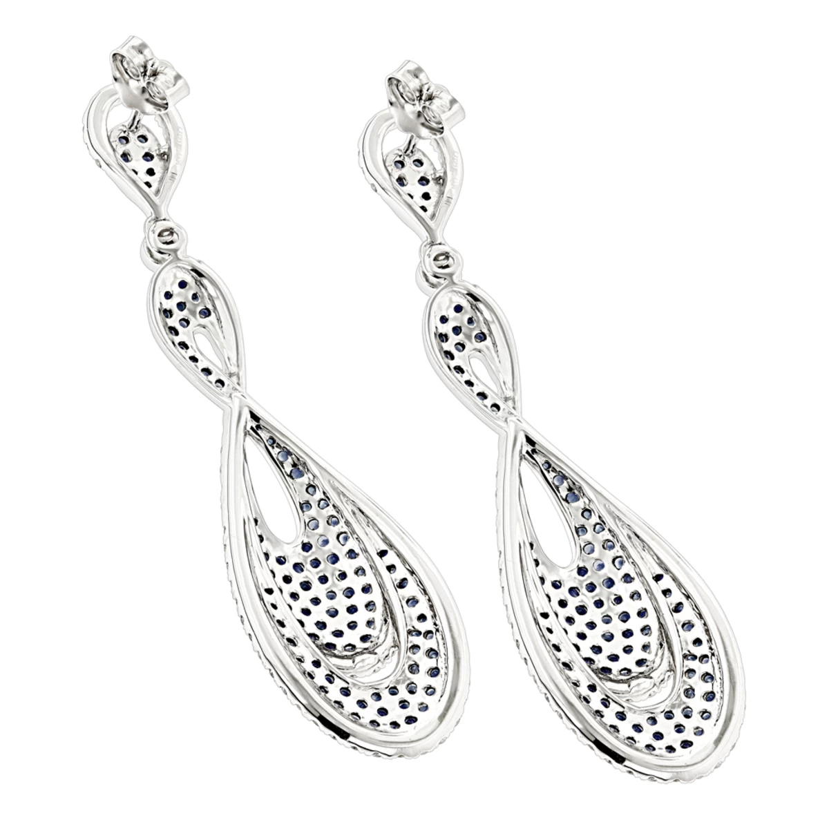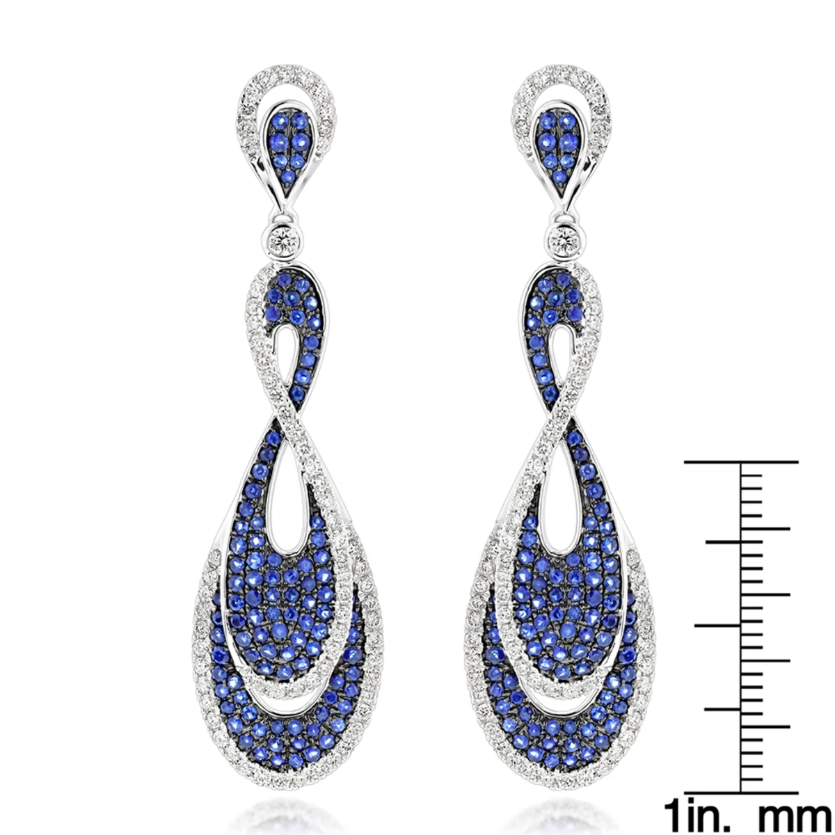 Blue Sapphire Diamond Ladies Infinity Earrings By Luxurman 4ct 14K White Gold