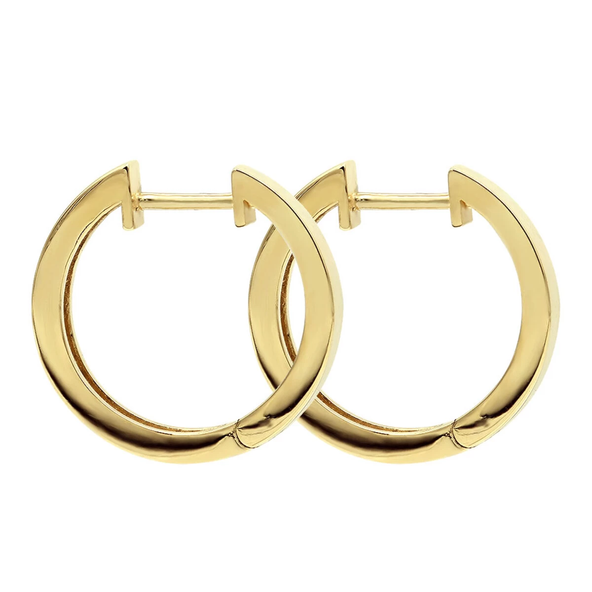Classy Small 1/2 Inch Diamond Hoop Earrings 14K Yellow Gold Huggies Round Diamonds