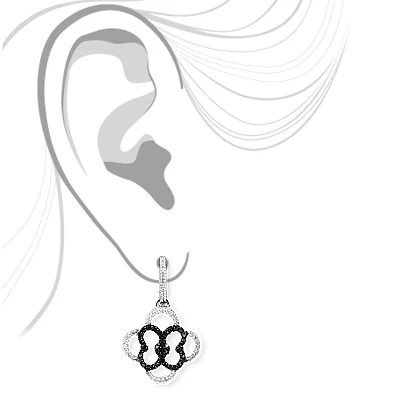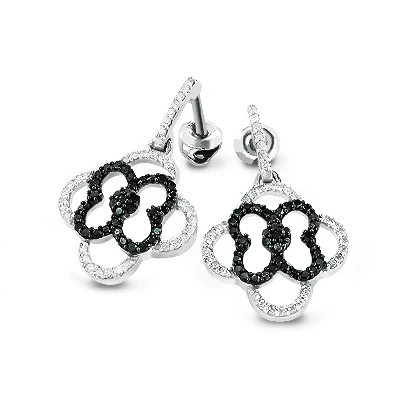 Dangling Flower Earrings With Black And White Diamonds 0.53ct 14K White Gold