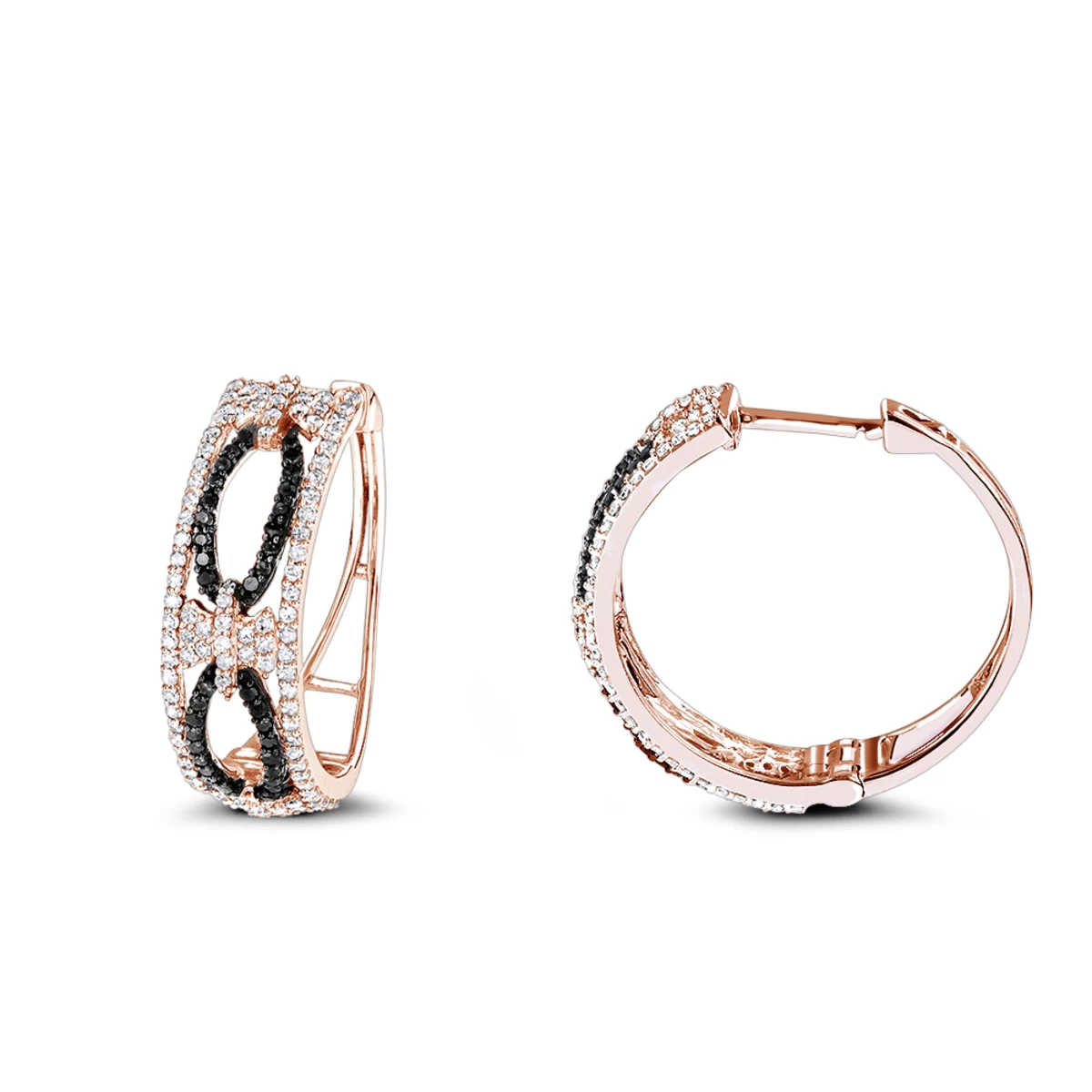 These Designer White Black Diamond Hoop Earrings 0.9 ct 14K are the perfect way to add a touch of elegance to any look. Crafted from 14K gold in your choice of white, yellow, or rose, these earrings feature a hinged back for easy wear. The round hoops are adorned with 0.9 carats of white and black diamonds, set in a pave setting for a dazzling effect. The diamonds are I clarity, ensuring a beautiful sparkle. These earrings are sure to become a favorite in your jewelry collection. Whether you’re dressing up for a special occasion or just want to add a touch of glamour to your everyday look, these Designer White Black Diamond Hoop Earrings 0.9 ct 14K are the perfect choice.