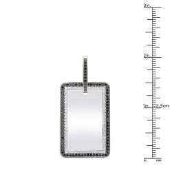 Engravable 2 Carat Black And White Diamond Dog Tag Pendant For Men 14K White Gold
