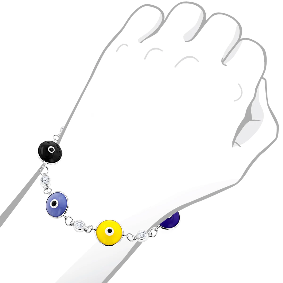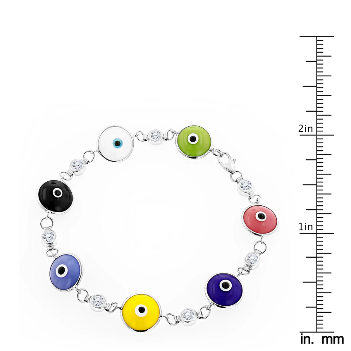 Evil Eyes 14K White Gold Diamond Evil Eye Bracelet Multicolor 0.70