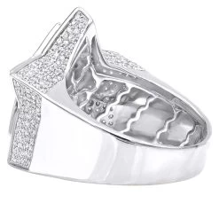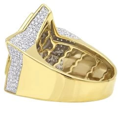 From our hip hop jewelry collection: This 10K Gold Hip Hop Diamond Ring for Men is featuring a massive five-pointed star within a star design fully covered with 1.5 carats of sparkling pave set round diamonds including sides of the ring. Five-pointed star is one of the greatest hip hop symbols of all times. This men’s diamond ring is showcasing a large 3D star with an outlined contour of the star in the center which is making it even more vibrant. This style also makes it a perfect pinky ring. The ring is available in Yellow, White and Rose Gold and is sure to stand out being nearly an inch wide: 7/8in. (23mm).